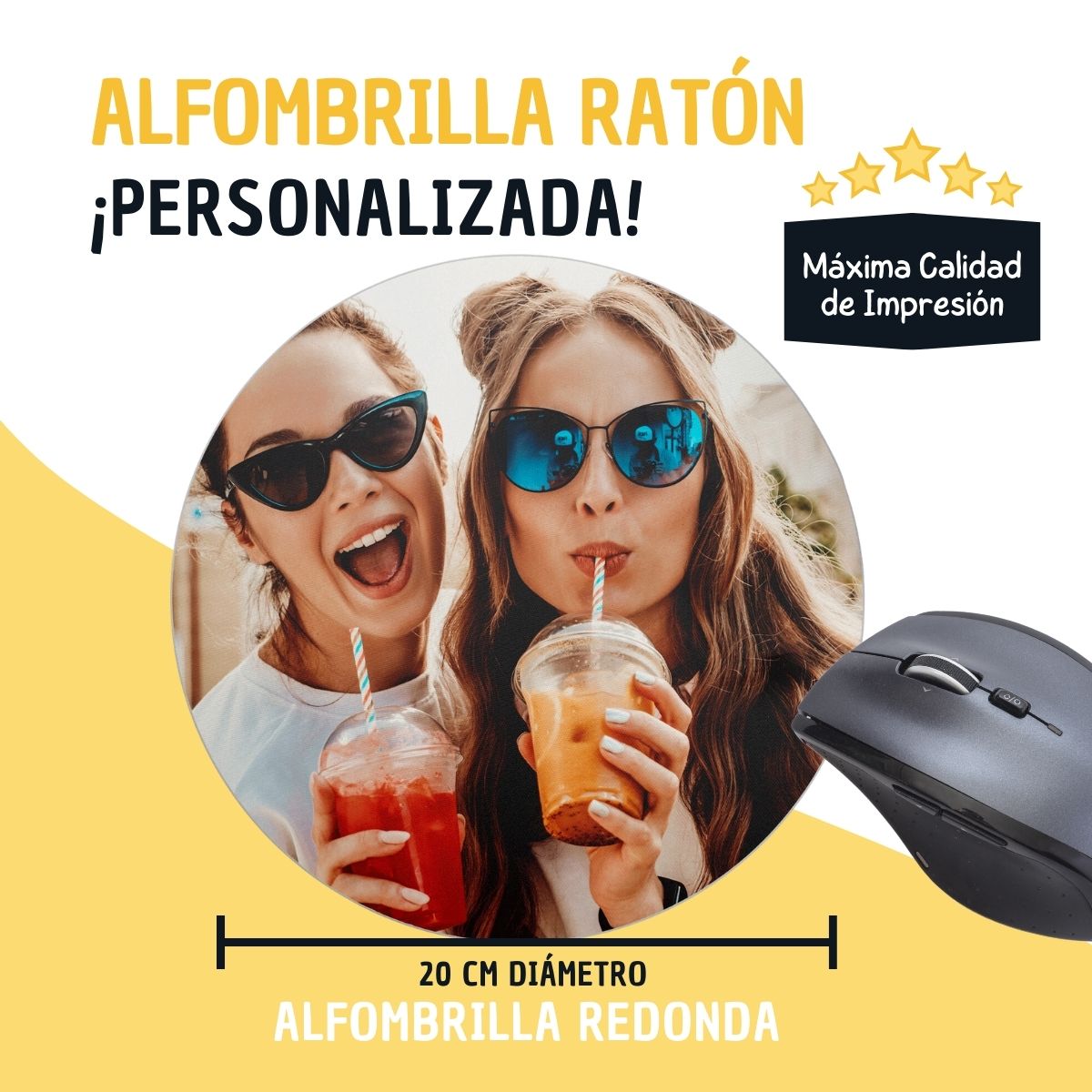 En cuanto a tamaño, esta alfombrilla redonda personalizada cuenta con un diámetro de 20 cm, una medida óptima que se adapta perfectamente a cualquier espacio de trabajo sin ocupar demasiado sitio. Su formato redondo aporta un toque moderno y original frente a las alfombrillas tradicionales, integrándose fácilmente en escritorios de oficina, mesas de estudio o espacios de gaming ligero. Es una opción versátil que encaja tanto en ambientes profesionales como personales.