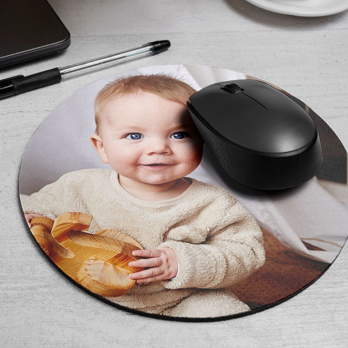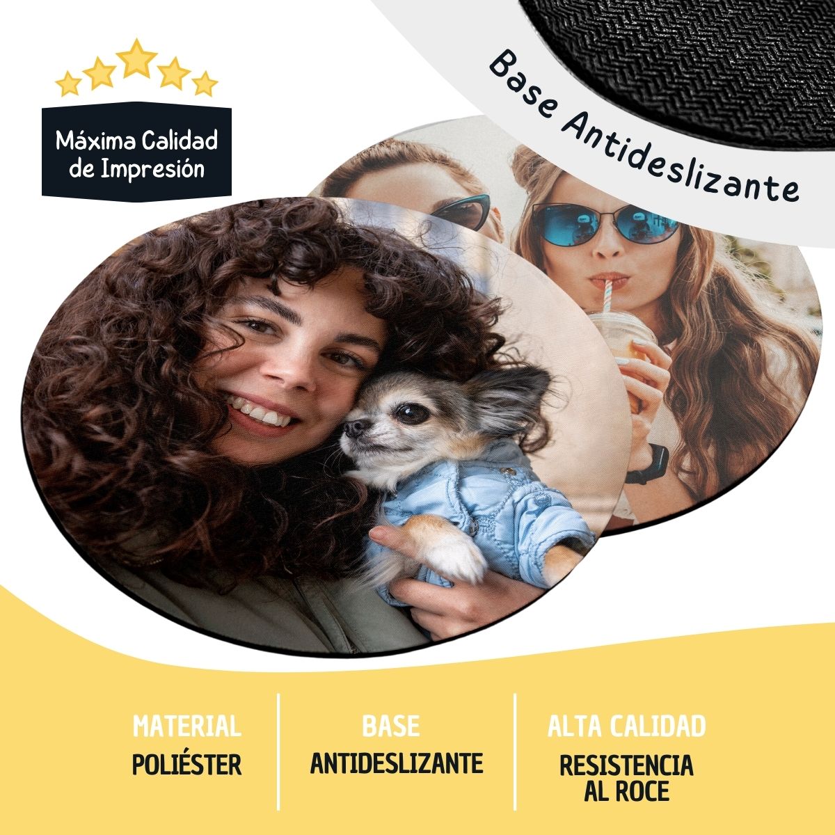 Esta alfombrilla para ratón con foto personalizada está fabricada con materiales de primera calidad, pensados para ofrecer una experiencia de uso cómoda y duradera. Su superficie superior de poliéster permite un deslizamiento suave y preciso del ratón, facilitando tanto tareas cotidianas como trabajos más exigentes o sesiones prolongadas frente al ordenador. La calidad del tejido asegura que el movimiento sea fluido y constante, mejorando la ergonomía y el rendimiento diario.