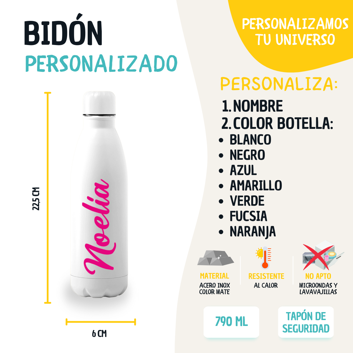 Botella de 790 ml personalizada con nombre