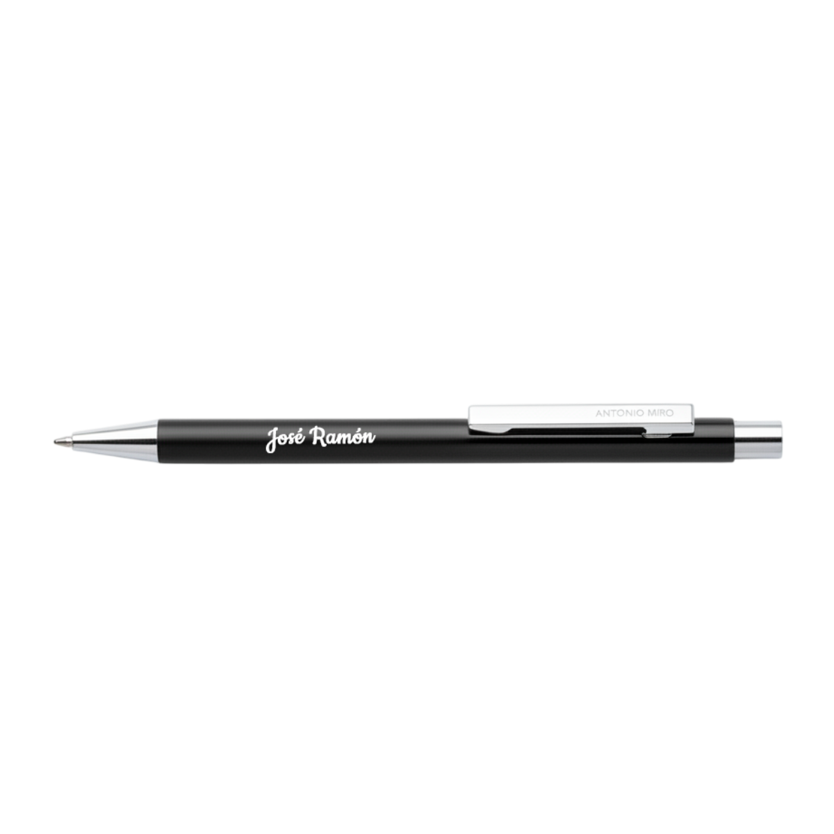 El bolígrafo personalizado elegante Antonio Miró es una pieza de escritura creada para quienes valoran el diseño de autor, la elegancia atemporal y la personalización de alta calidad. Firmado por Antonio Miró, este bolígrafo destaca por su cuerpo metálico anodizado en negro mate, líneas limpias y una estética minimalista que encaja a la perfección en entornos profesionales y celebraciones especiales.