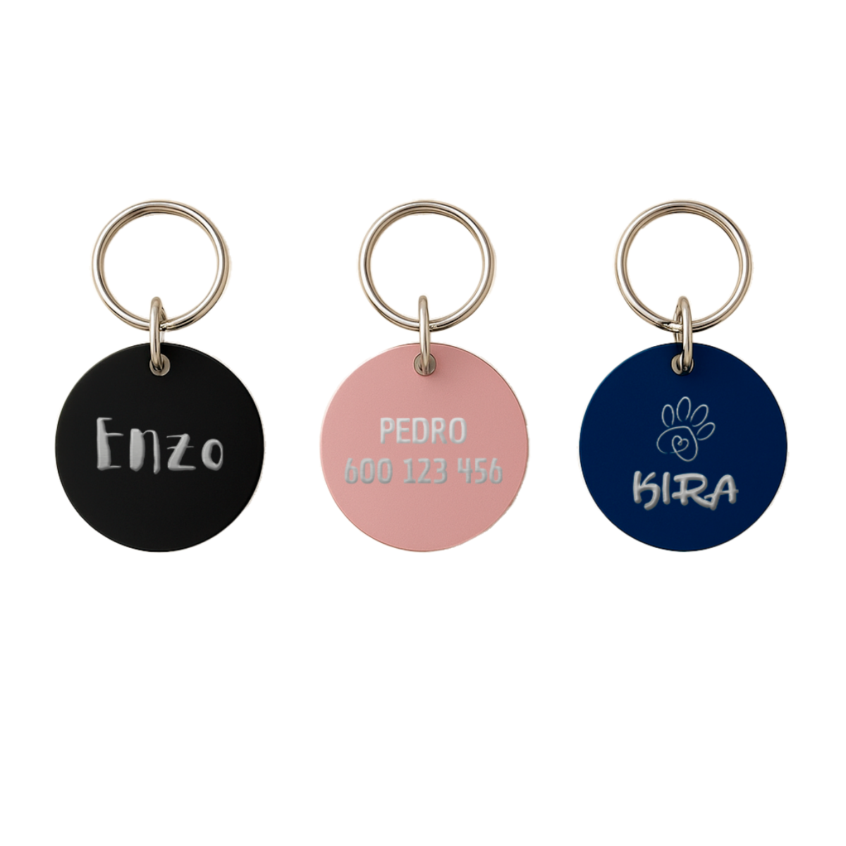 Fabricada en aluminio anodizado ligero y resistente, esta chapa destaca por su grabado láser profesional a doble cara, que permite incluir información clave como el nombre de tu mascota, número de teléfono, dirección o mensajes importantes tipo “llevo chip” o “necesito medicación”. El grabado es profundo, permanente y altamente resistente, no se borra con el agua, la exposición al sol ni el roce diario, asegurando una legibilidad óptima durante toda su vida útil.