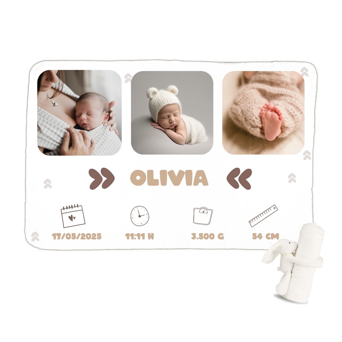 Manta Bebé Personalizada con Nombre | Incluye Peluche (Conejo u Osito) | Regalo Original para Bebés 31,95