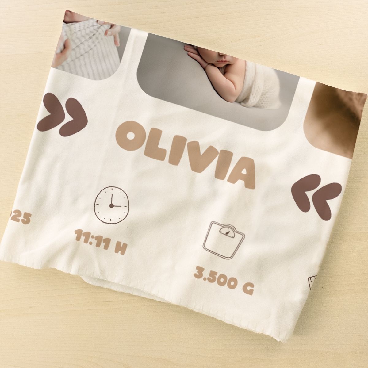 La personalización con nombre, datos, frases o fotos convierte esta manta en un recuerdo emotivo y único, perfecto para sorprender a padres primerizos. Es un regalo que transmite cariño, cuidado y atención al detalle, algo especialmente valorado en celebraciones como nacimientos, bautizos o baby showers.